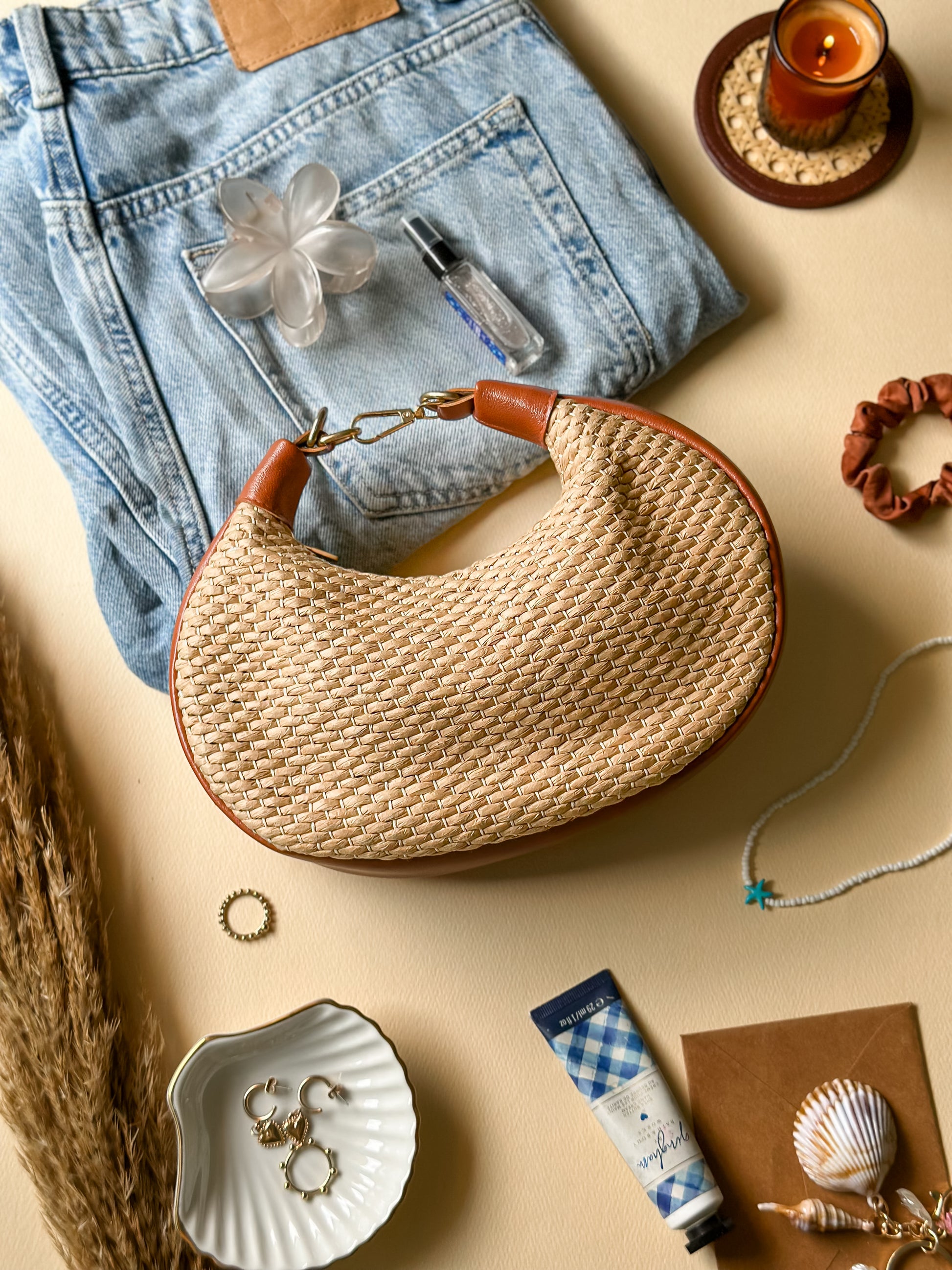 Meet the Nido Bag, your new everyday-but-elevated essential. Handwoven to perfection and finished with smooth vegan leather, this crescent silhouette brings effortless coastal energy to any outfit — from brunch plans to sunset getaways.